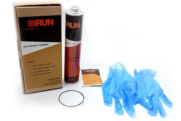 Conţine: adeziv parbriz VABER VITROFIX, lavetă degresantă RUN, mănuşi, sârmă tăiat parbriz patrata, pamatuf aplicator